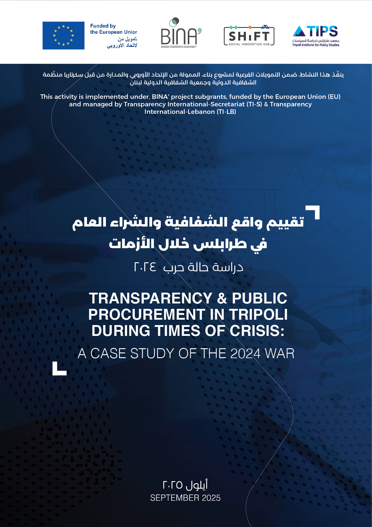 The 2024 war revealed a significant gap between the public procurement legal framework and its actual implementation on the ground in Tripoli. Despite the existence of a modern Public Procurement Law (244/2021) and institutional mechanisms at both the national level, through the Disaster Risk Management Unit, and the local level, through the Sub-Committee for Disaster Risk and Crisis Management in the North, the field response reflected a near-total absence of public procurement. The response relied almost entirely on international aid and foreign donations, without adequate local mechanisms to disseminate data and standards related to the distribution processes. While this approach helped meet emergency needs, it revealed a lack of accountability and raised public doubts about the transparency of aid distribution, as well as concerns regarding the fairness of access to aid. This paper argues that the gap stems from weak political will, the financial collapse of municipalities, and poor integration between national and local mechanisms. Based on six months of research and fieldwork, this paper presents a set of recommendations at both the legal and practical levels, aiming to enhance transparency in the public procurement system in light of the study’s findings.